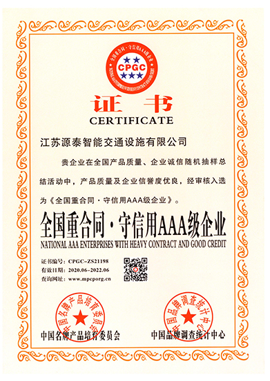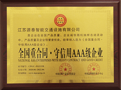 全国重合同守信用AAA级企业